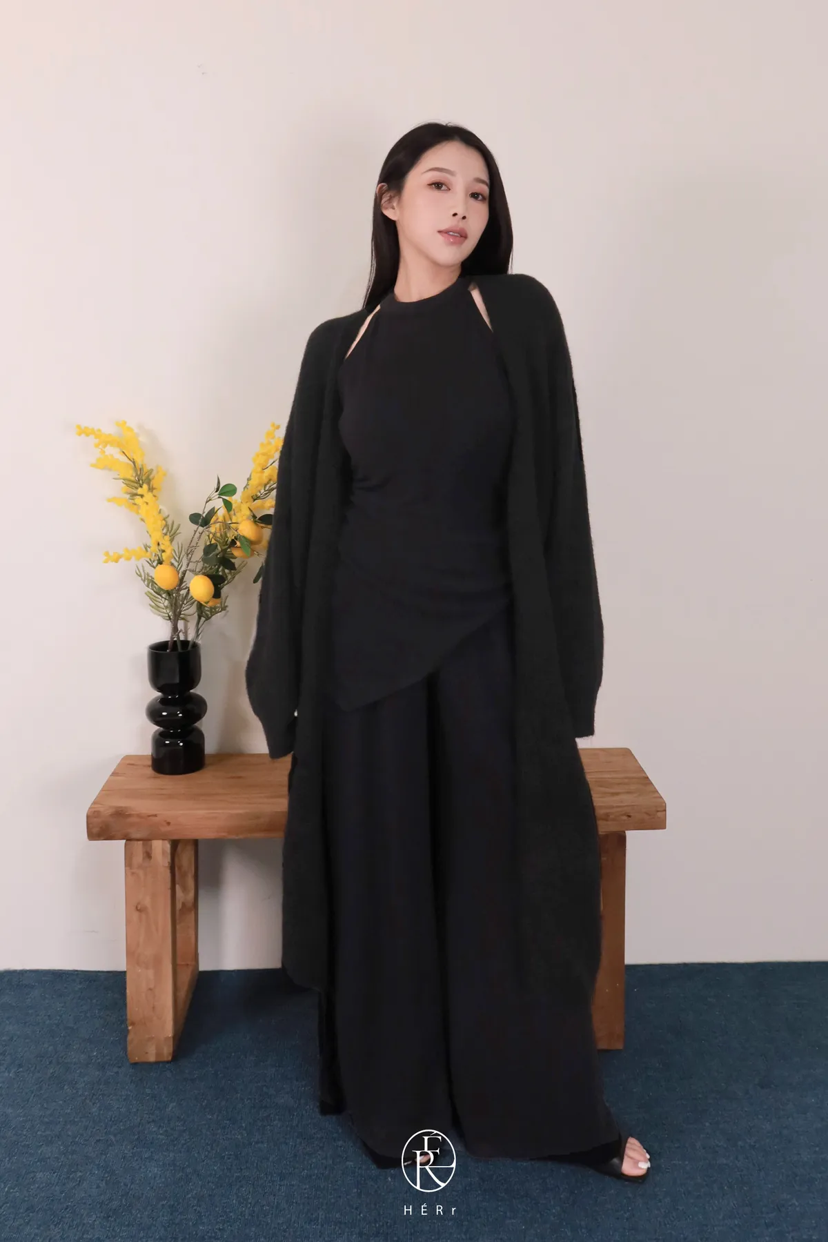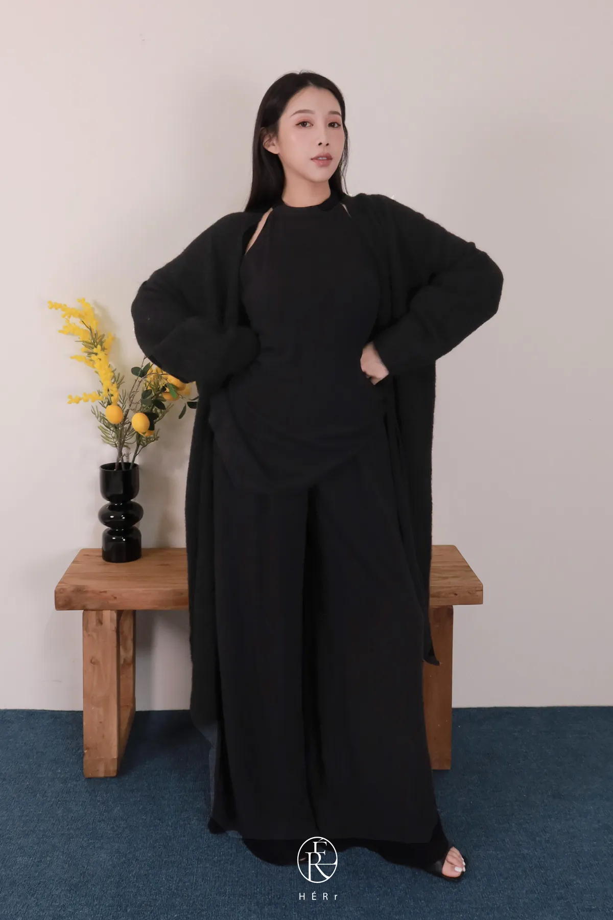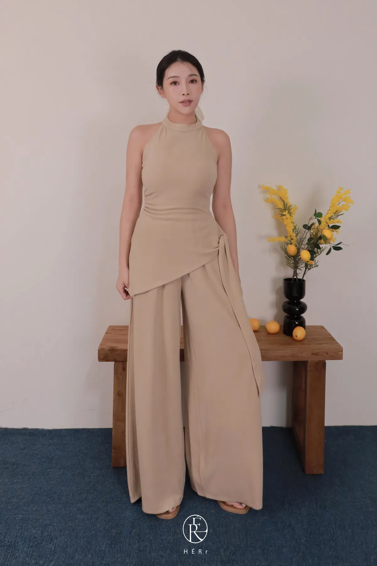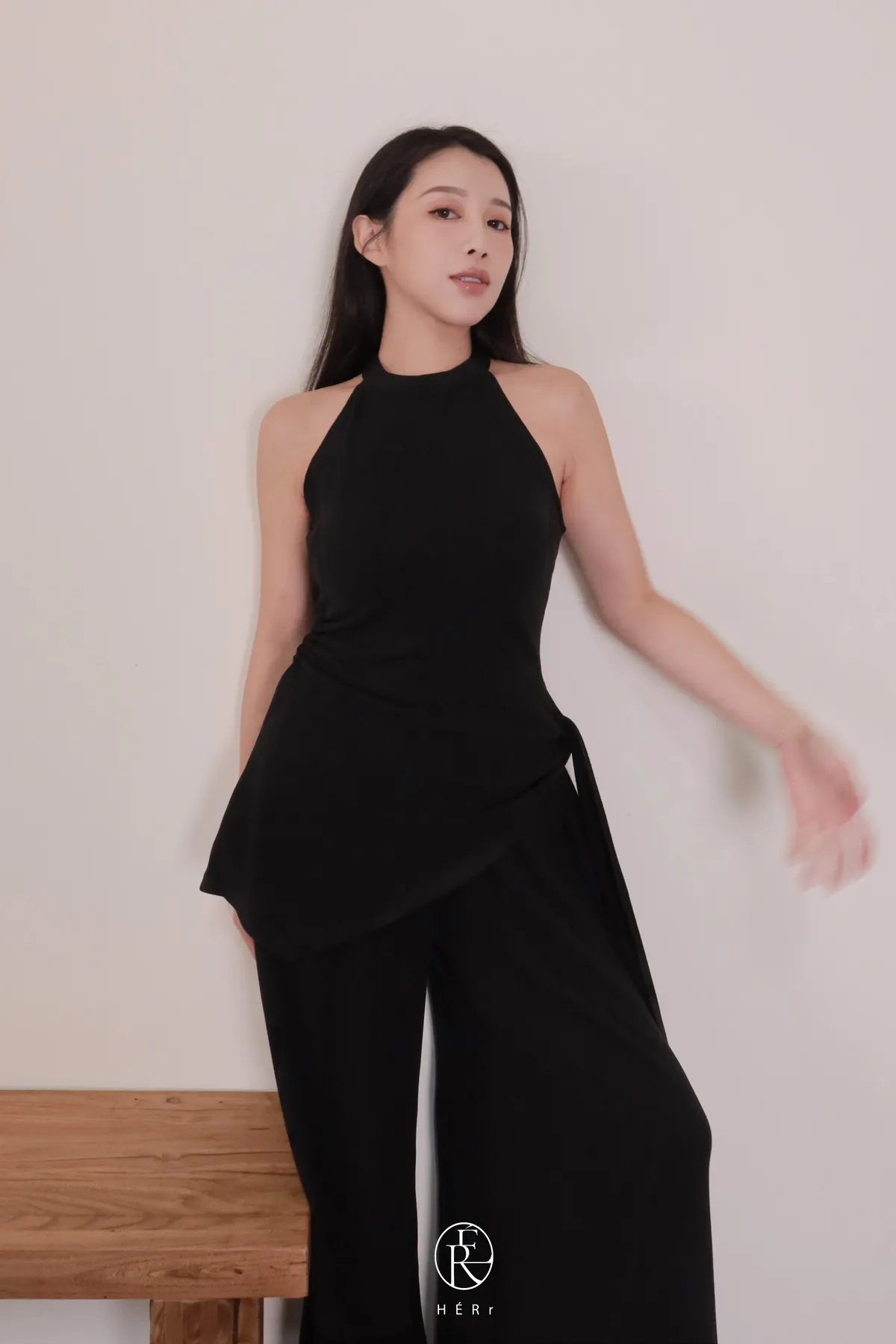 下半身是帶垂墜感的寬褲版型,走路會飄,整個人比例瞬間被拉高✨